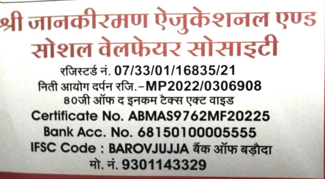 उनकी संस्था श्री जानकी रमन एजुकेशन एंड सोशल वेलफेयर सोसाइटी समाज कल्याण के विविध क्षेत्रों में सक्रिय है —
