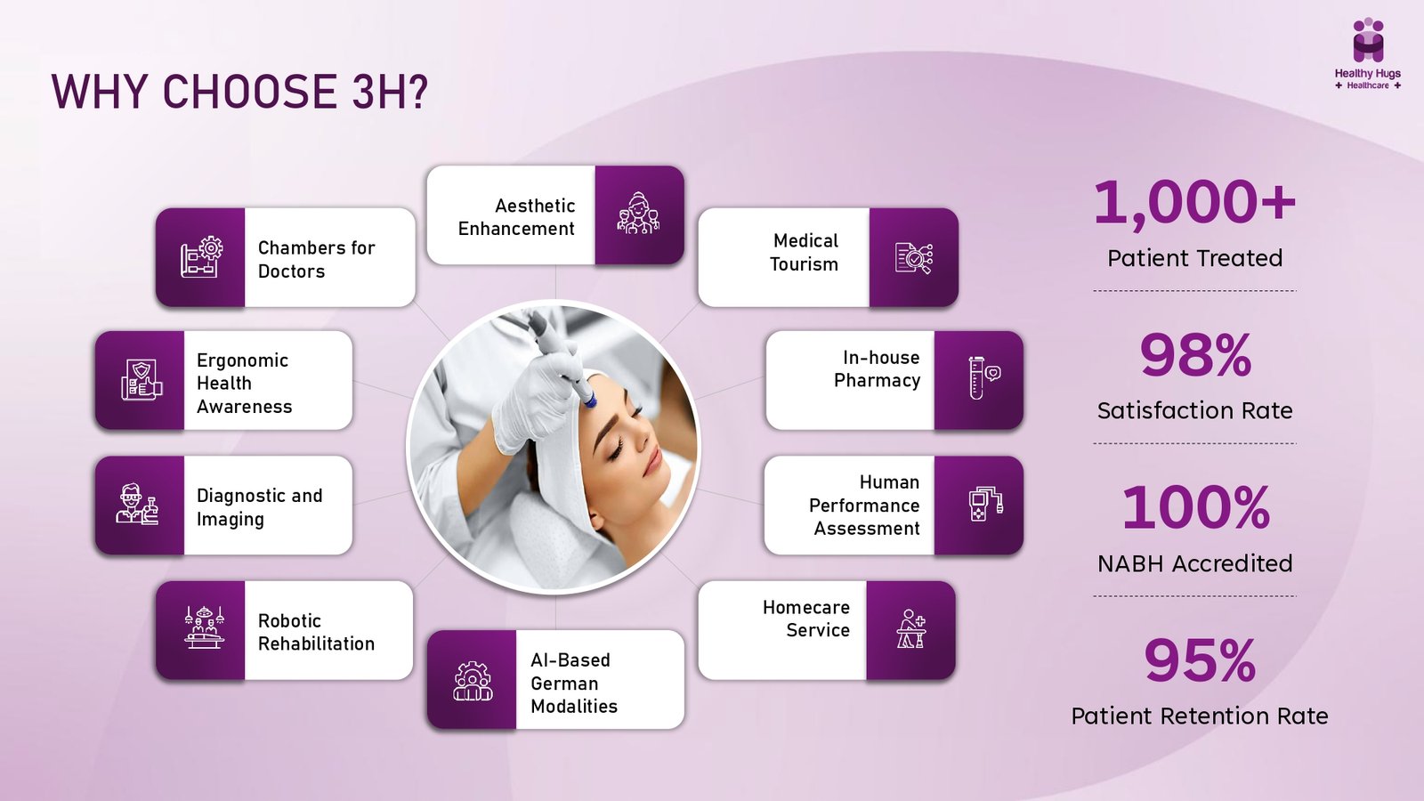 Healthy Hugs Healthcare (3H) has redefined healthcare by proving that modern medicine can coexist with empathy and holistic care. From Pain Management and Rehabilitation to Lifestyle Enhancement and Aesthetics, every service at 3H reflects its belief that health is not just physical—it’s emotional, mental, and spiritual too.